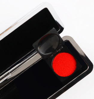 女性のおしゃれ印鑑にピッタリの琥珀(樹脂)素材。透明な中身の中で、赤色な模様があり、当店の人気アイテムです。