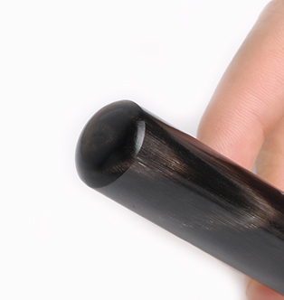 硬さと弾力性をバランスよく持っている印材で、朱肉のつきの良さに非常に優れています。弊店の使っている黒水牛は「芯持ち」と呼ばれる材料です。