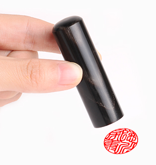 硬さと弾力性をバランスよく持っている印材で、朱肉のつきの良さに非常に優れています。弊店の使っている黒水牛は「芯持ち」と呼ばれる材料です。