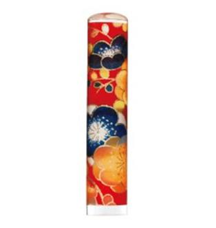 女性のおしゃれ印鑑にピッタリの琥珀(樹脂)素材。透明な中身の中で、赤色な模様があり、当店の人気アイテムです。