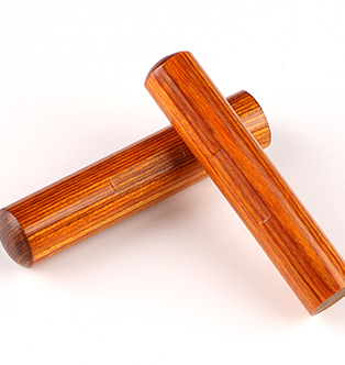 北方寒冷地で産出される真樺とフェノールレシン(樹脂)を高圧加熱処理したもので、伸縮やヒビ割れが少なく、硬度に優れキメも細かいので印鑑には非常に適したエコ素材です。木目が細かく、表面は透明な漆で仕上げ、汚れにも強い、独特な茶色、黄色で深味のある人気素材です。
