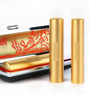 チタンに印鑑の上側を示す「目印アタリ」が付く金属系印材です。高級感のあふれる、ゴールドチタン製印鑑。ツヤ消し加工により、目立ちすぎず、上品な色合い、落ち着いた雰囲気を醸し出す。純チタン製、お肌にやさしい素材なので、金属アレルギーの心配がなく、安心してお使い頂けます。